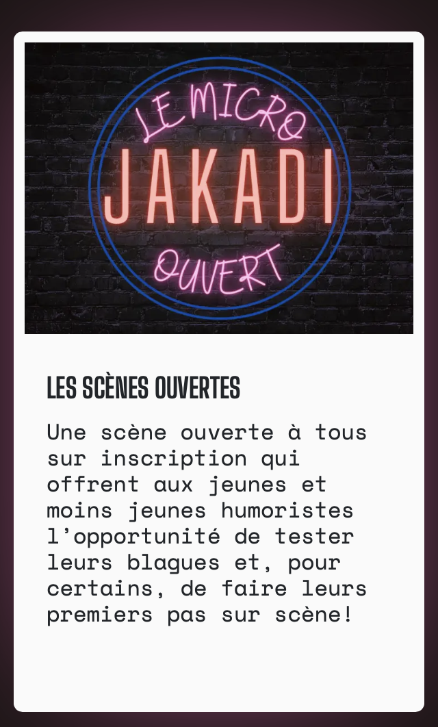 Restez connectés ! Nous avons hâte de vous communiquer les prochaines dates où le rideau se lèvera pour une nouvelle soirée de découvertes et de bonne humeur !